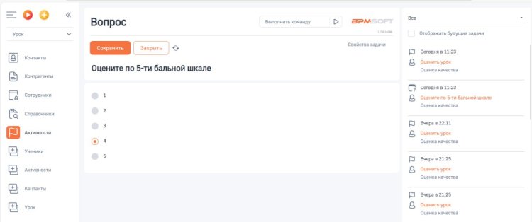 (рис. 8 – пример работы раздела активности – оценка урока)
